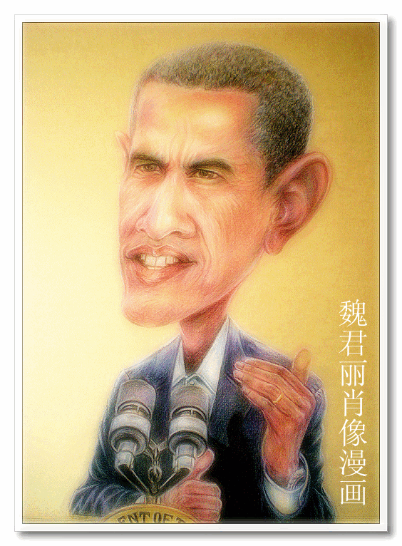 魏君丽肖像漫画,奥巴马漫画肖像